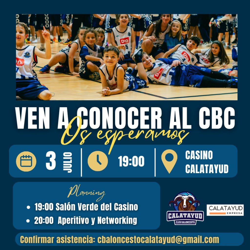 El próximo miércoles 3 de julio a las 19:00 horas, el Casino de Calatayud acogerá un evento muy especial que une dos pilares fundamentales del desarrollo local: el tejido empresarial y el deporte de base. Organizado por Calatayud Empresa y el Club Baloncesto Calatayud (CBC), el acto tiene como objetivo acercar a los empresarios y empresarias de la Comarca a la labor que desempeña el club, fomentar nuevas sinergias y compartir una visión común sobre el papel del deporte en la sociedad.