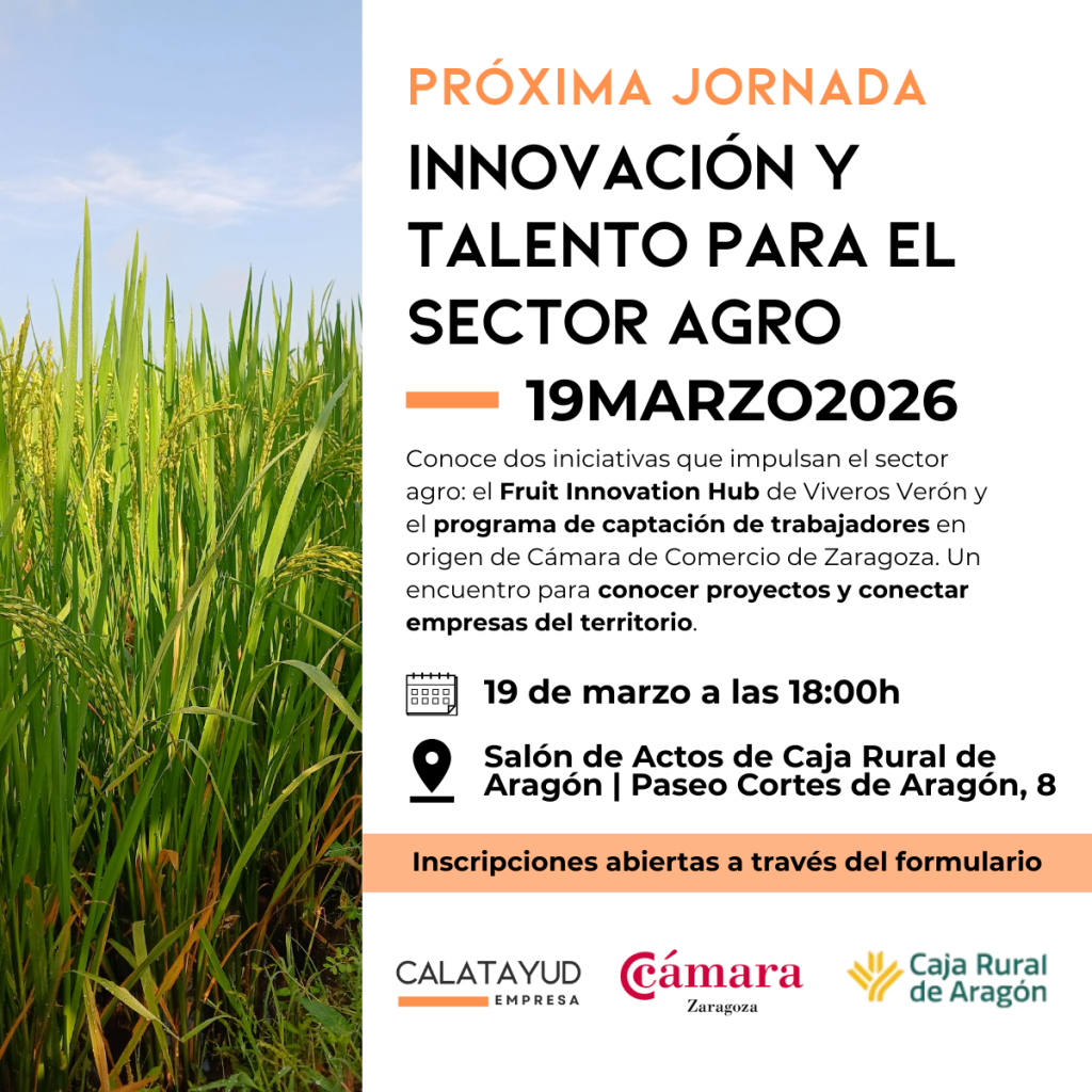 El sector agro es uno de los pilares económicos de nuestra comarca. Desde Calatayud Empresa organizamos esta jornada para presentar dos iniciativas que buscan impulsar su desarrollo y ayudar a las empresas a afrontar algunos de sus principales retos.
